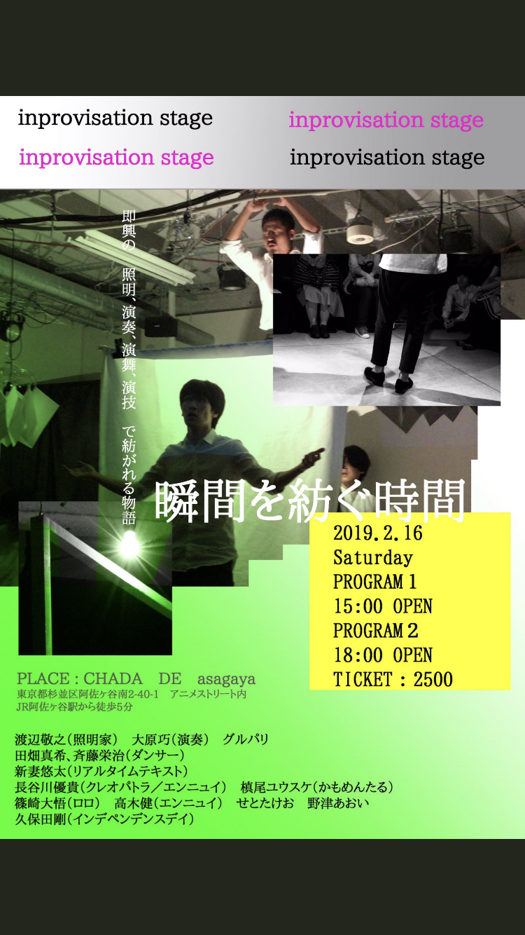 「瞬間を紡ぐ時間」という芸人さん、役者さん、ミュージシャン、照明さん、ダンサーなど今まで観たことない多様な人達での完全即興。